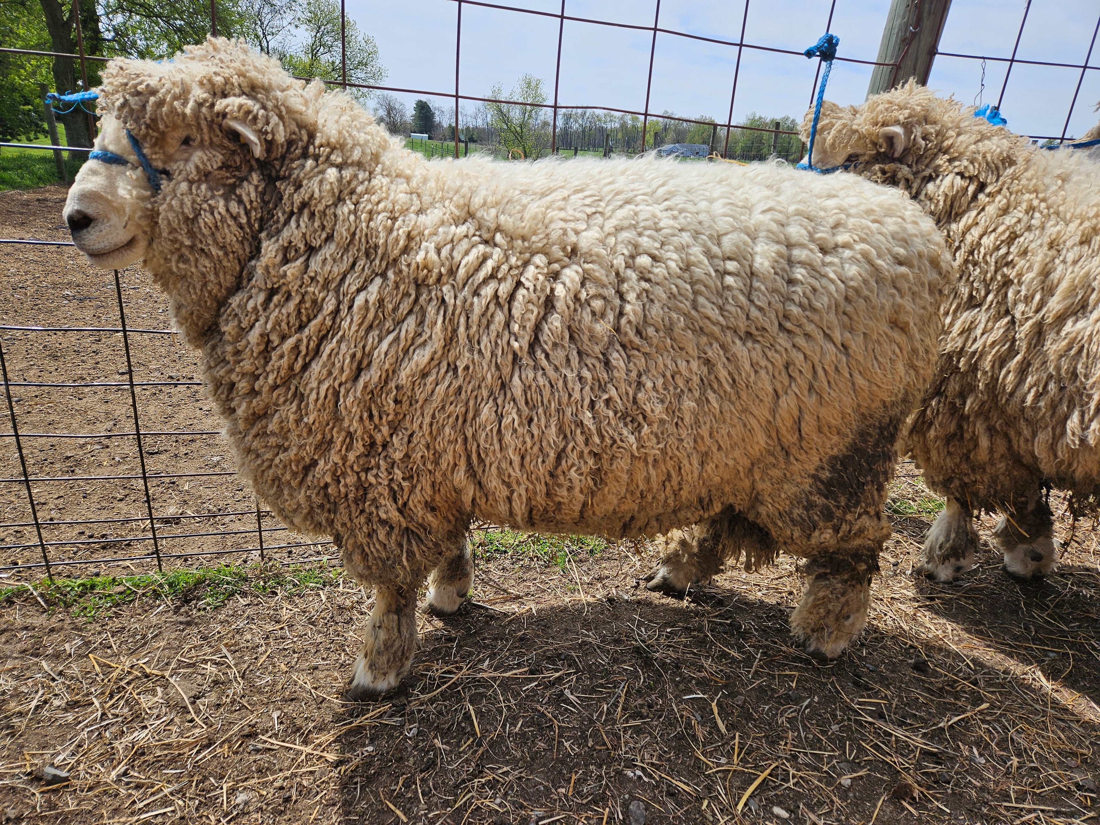 PF Flier has been siring some beautiful sheep with really nice fleeces. He has been a wonderful addition to 3L&S Farm's Breeding program. Raised by Pitchfork Ranch he was Supreme Champion Ram in 2021 @ Michigan Fiber Festival. His Dam was Supreme Chmpion Ewe in Rhinebeck at the 2019 New York Sheep & Wool Festival. There are some nice '25 ram lambs on the ground now good potentials for someones flock