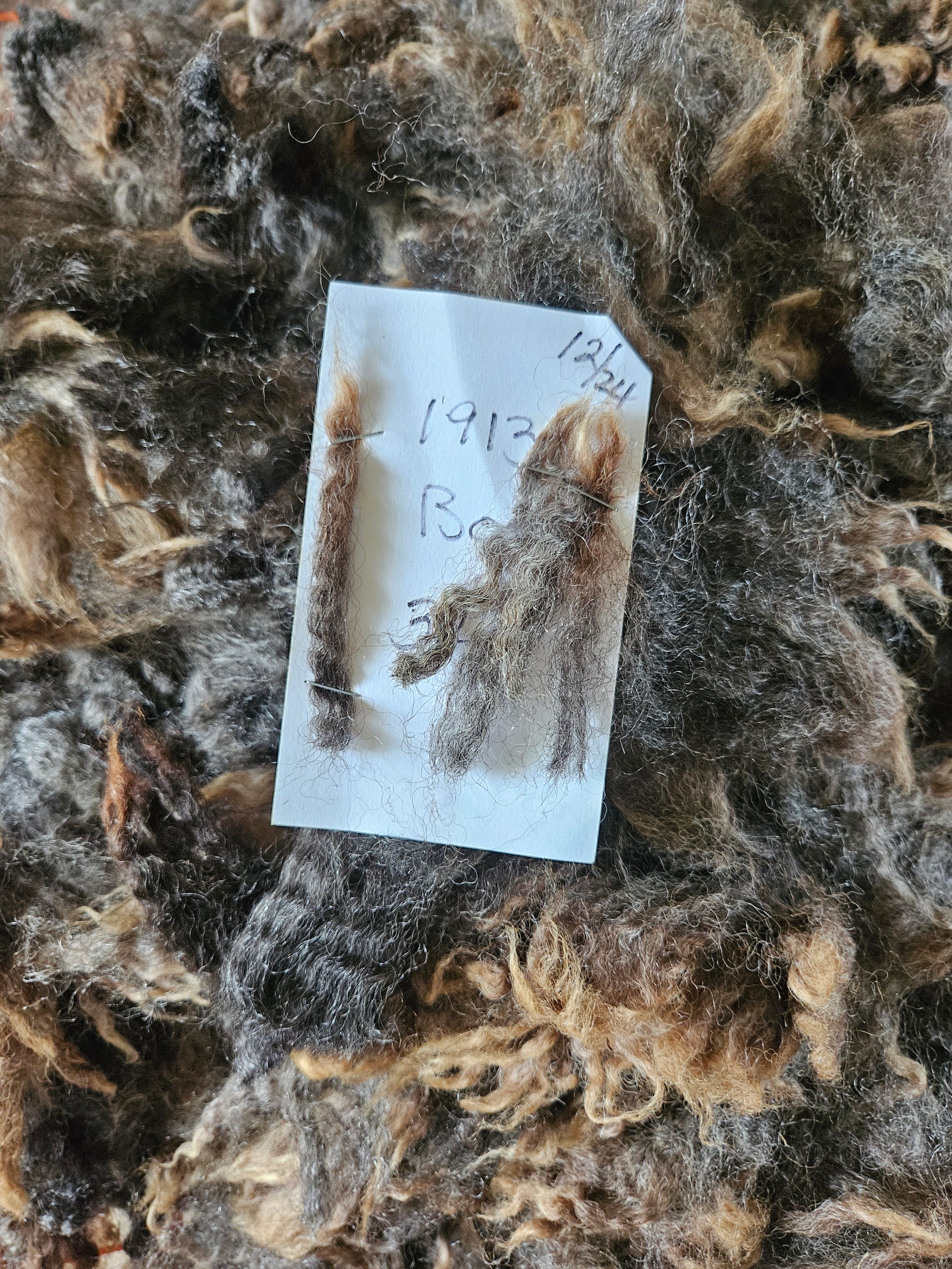 3LS Clown is a 5 year old ewe and her fleece has a beautiful tight crimp & even lock structure. Absilutely wonderful hand, on the finer side for Mature Romney ewes!