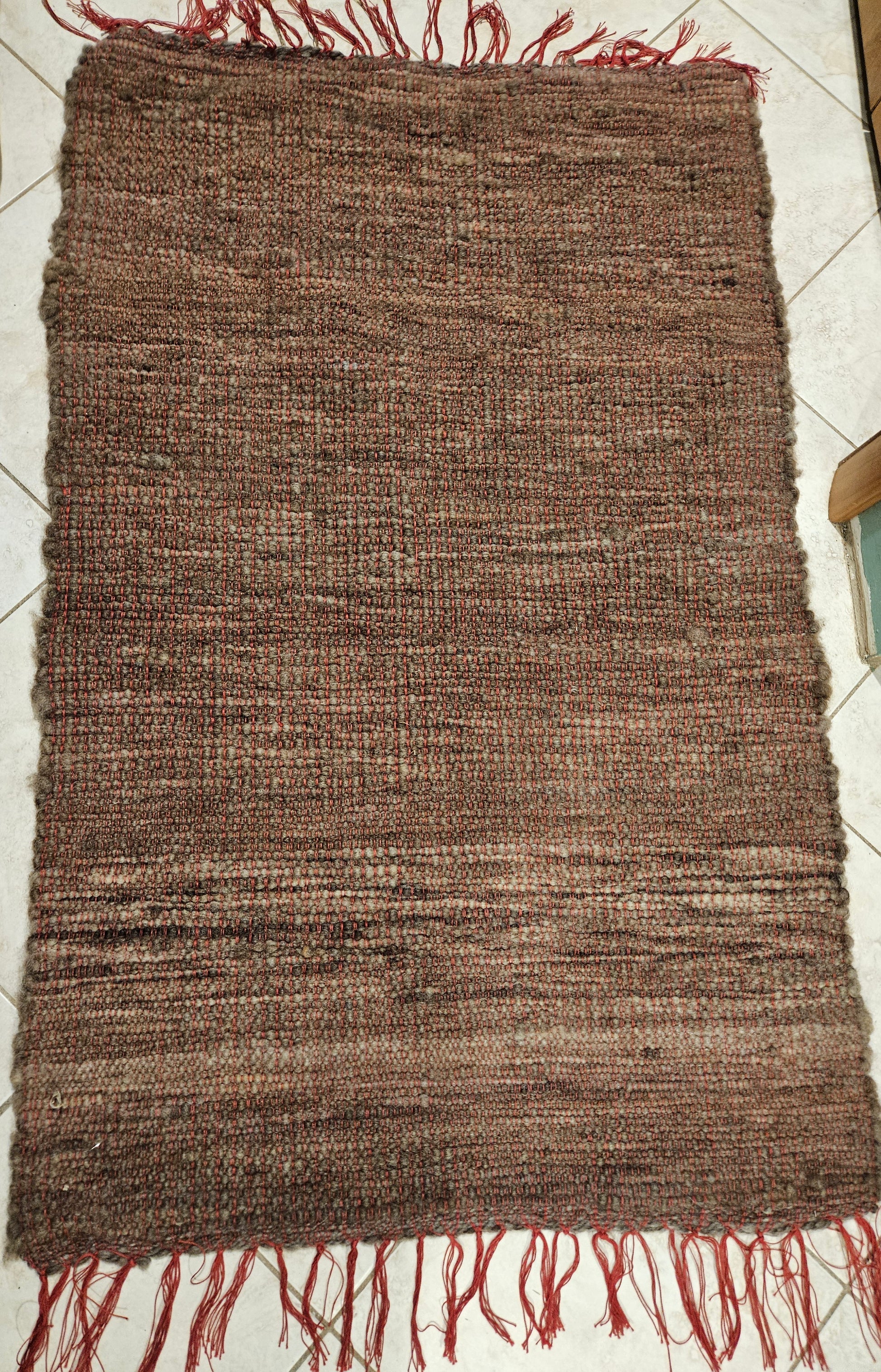 Sourced 100% from Romney Wool raised on family farm. Handwoven at Breezy Manor Farm by a Fiber Artists who incorporates local sourced Wool (Romney & other breeds) in all of her work. This rug has a great thick soft hand comfortable enough to sit on.