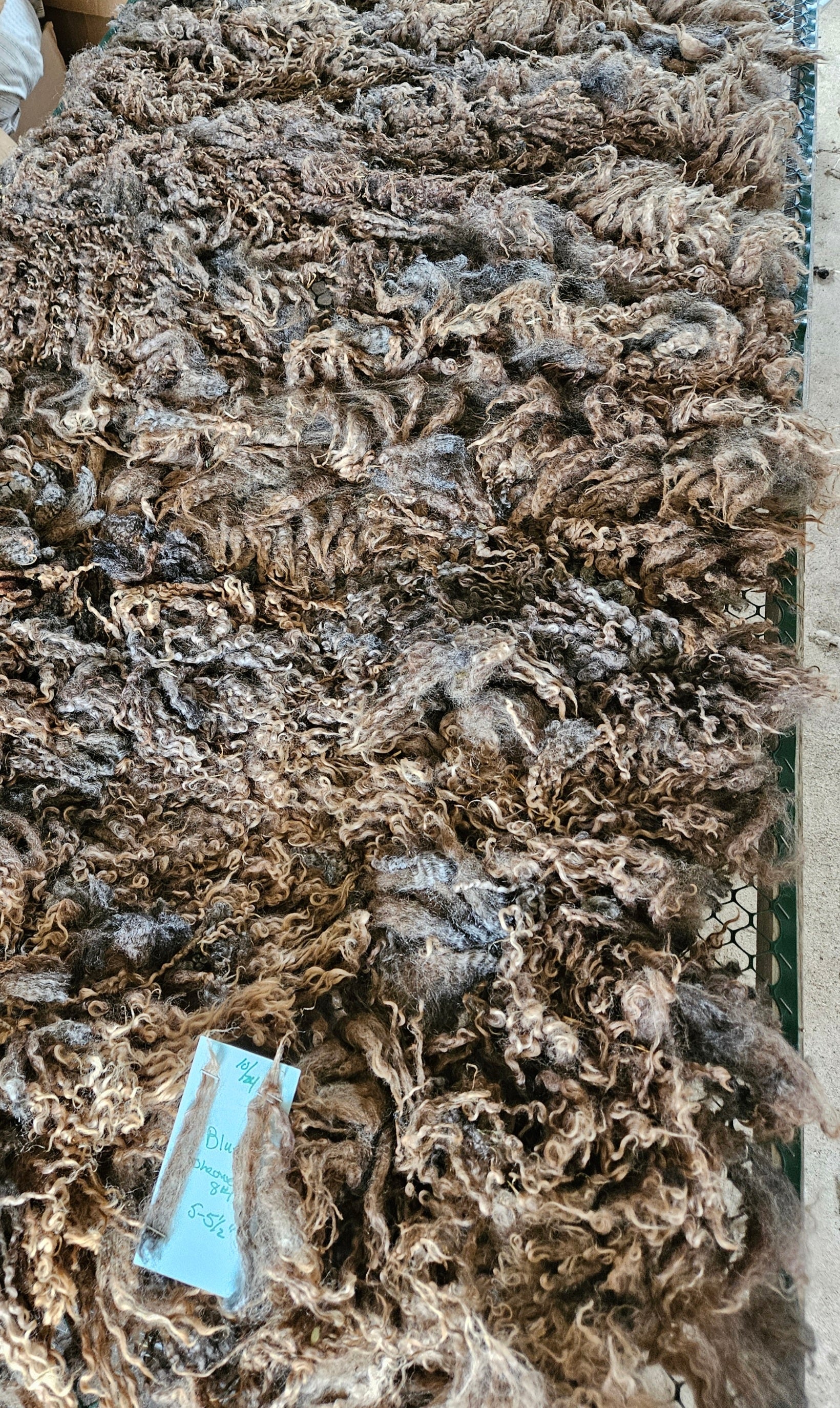 Hints of Blue mingles in a Silver-Gray color hence the ewes name "Blue" Well skirted for a wonderful Handspinning or Fiber arts experience.