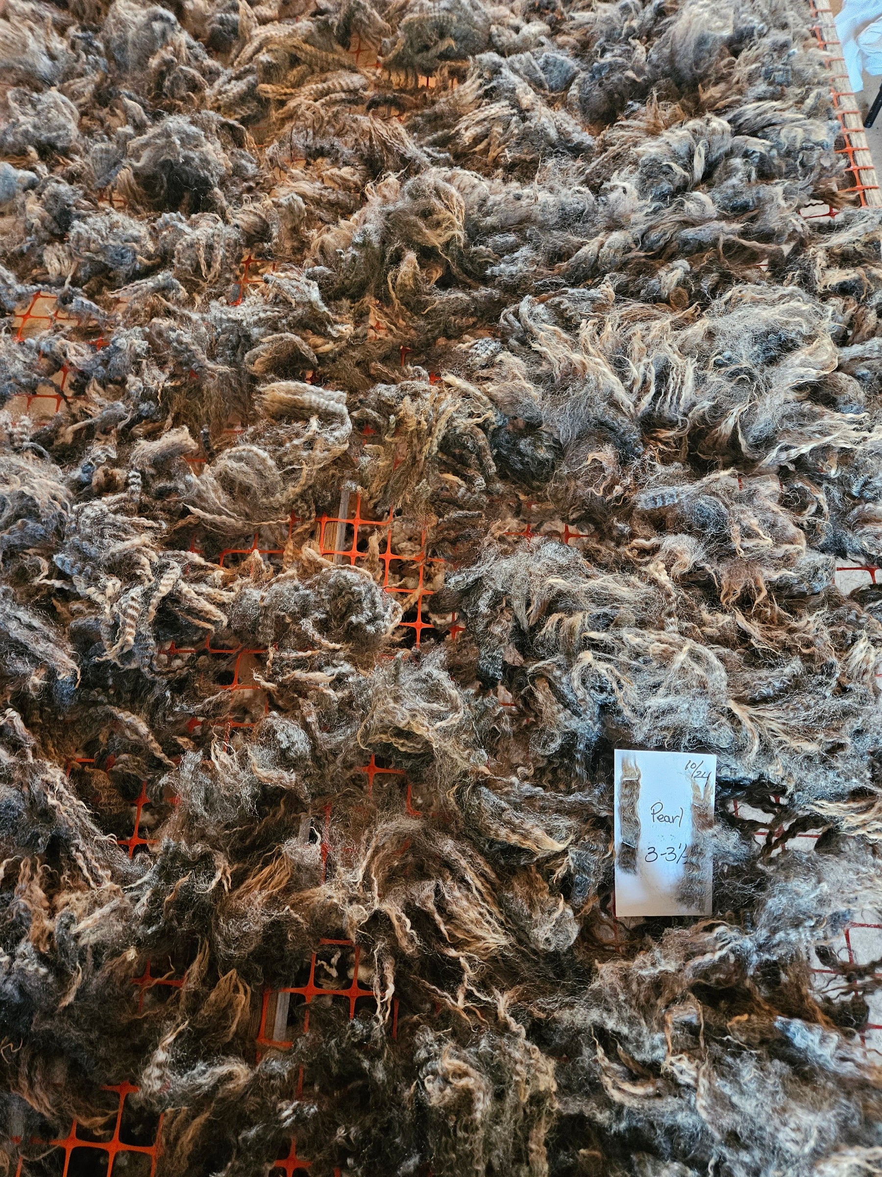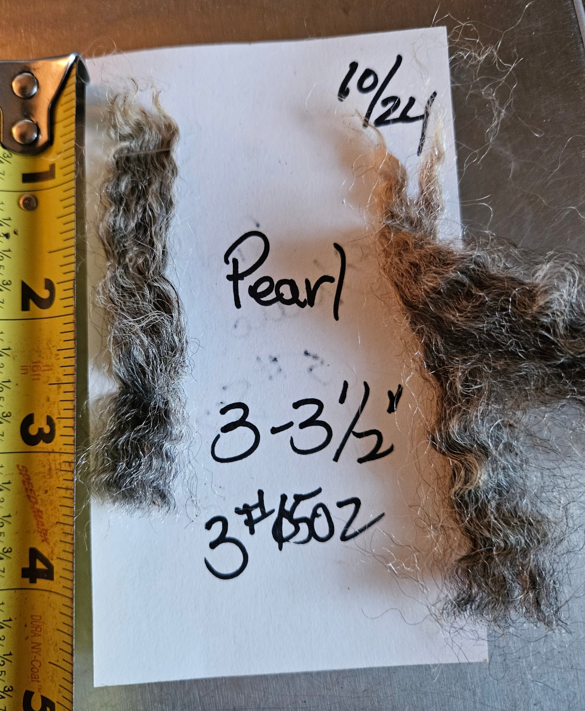 Lustrous bright silver from the Black Pearl. Nice Lock definitiin throughout. Skirted for wonderful Handspinninng or Fiber Arts Experience!