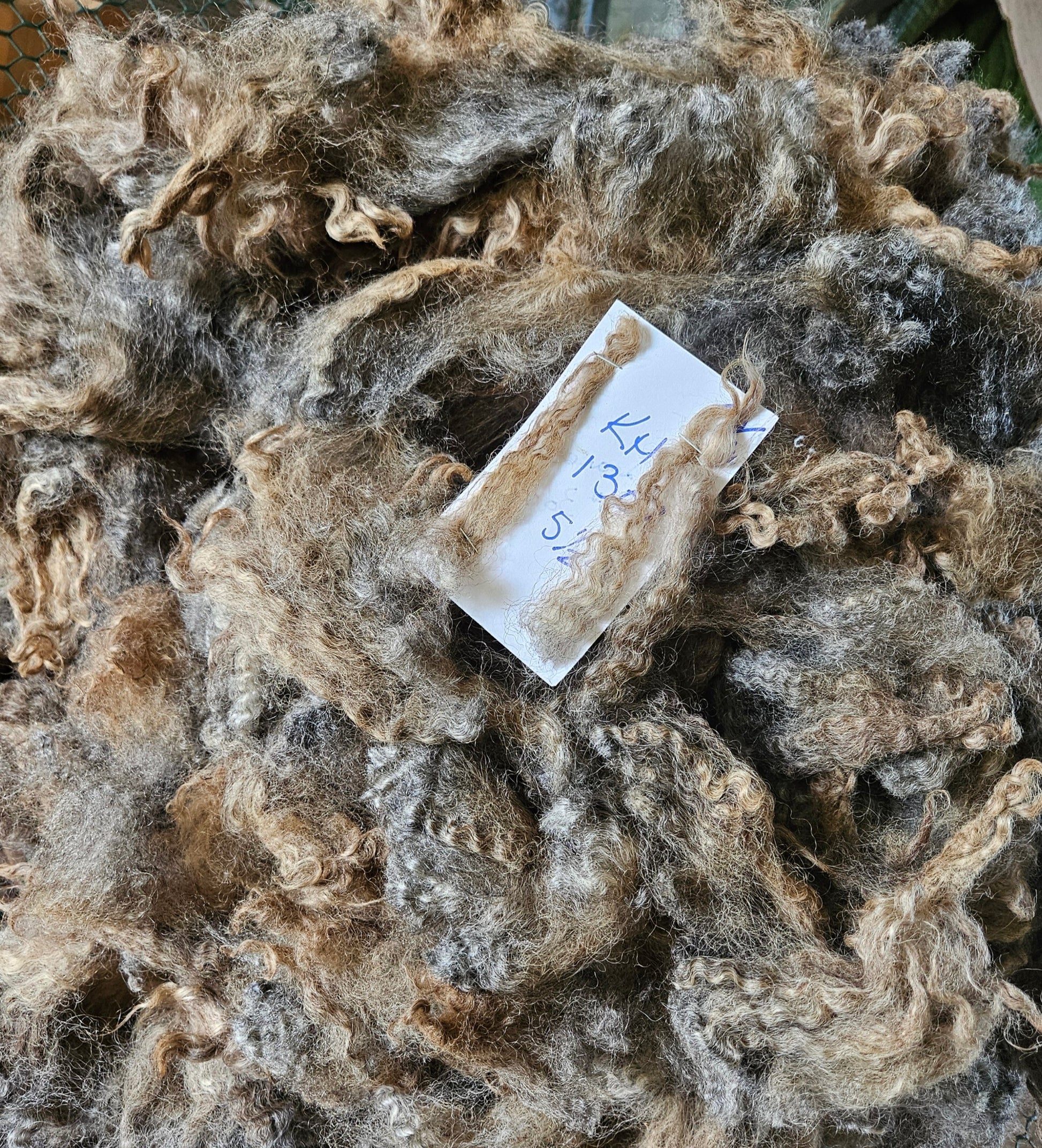 Ready for Handspinning. Heavily skirted fleece with any damaged or heavily Veggie Matter contaminated areas removed. Hand Spinning Ready. Shearing Date: October 2024
