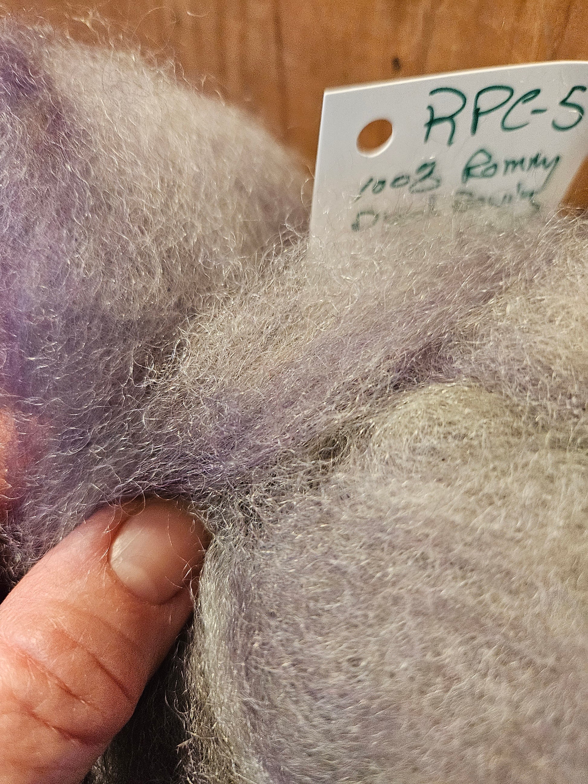 Soft Romney LAMB a soft steel blue swirled w/ violet Wonderful soft Hand!. Fiber Artist and Handspinning ready!