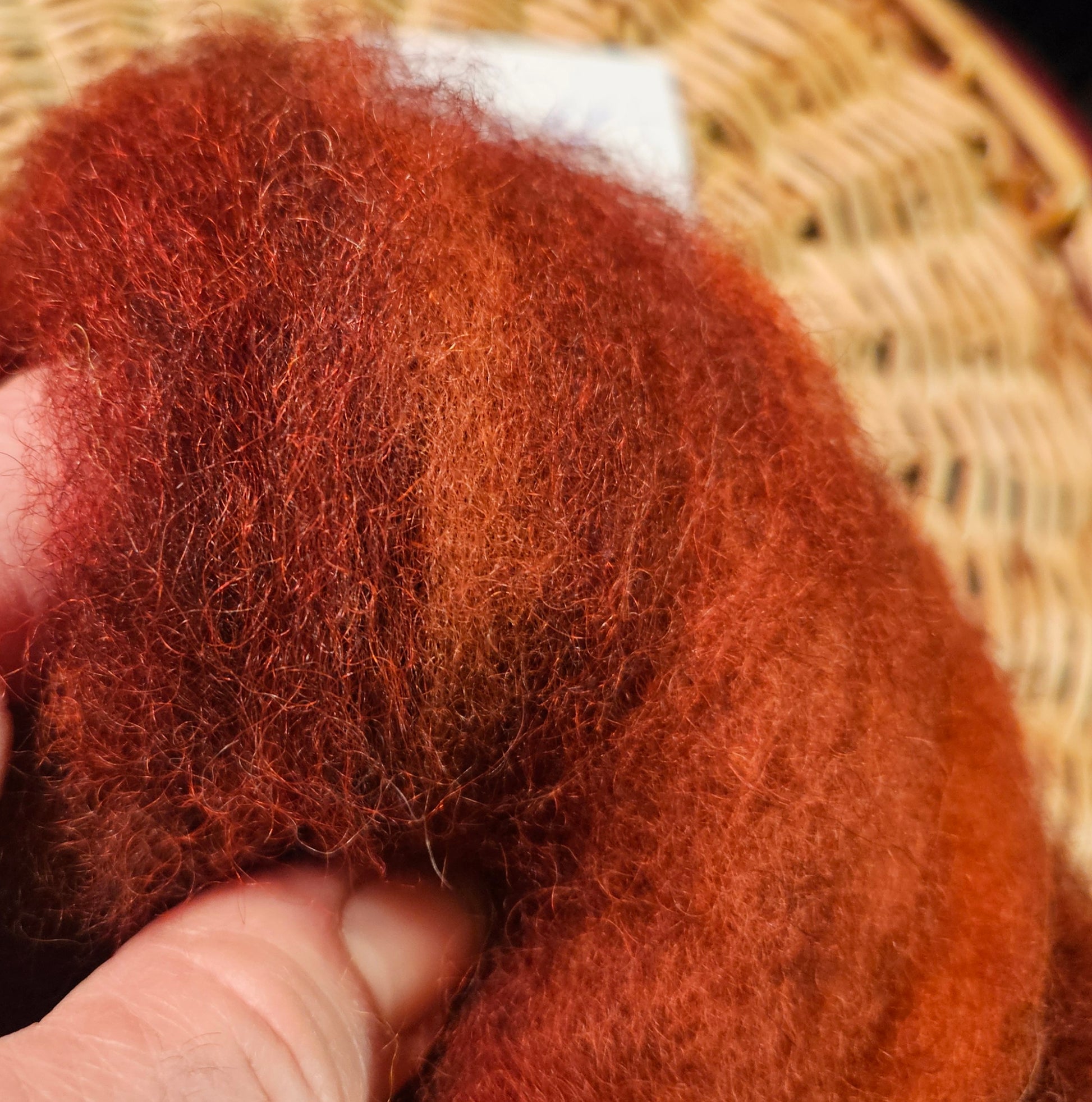 Rich Rust Swirl dyed Roving & fluffy hand. Fiber Artist and Handspinning ready!