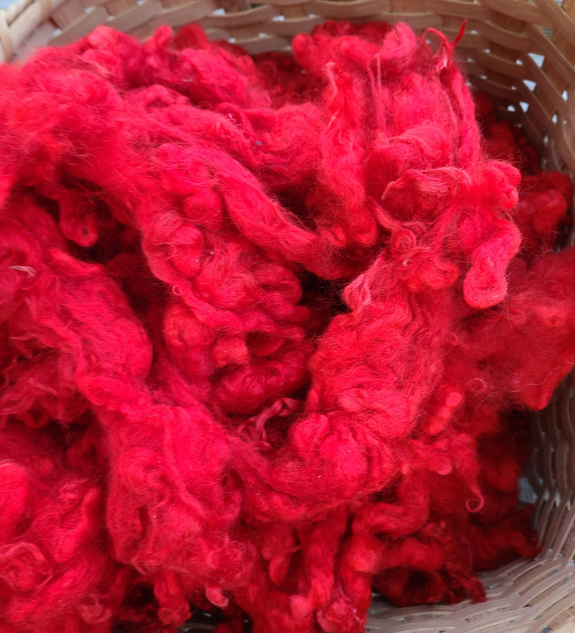 3L&S Romney Wool was Hand-dyed a brilliant Scarlet color on the Farm. These locks is ready for handspinning, needle felting or any project you want to embellish with color.
