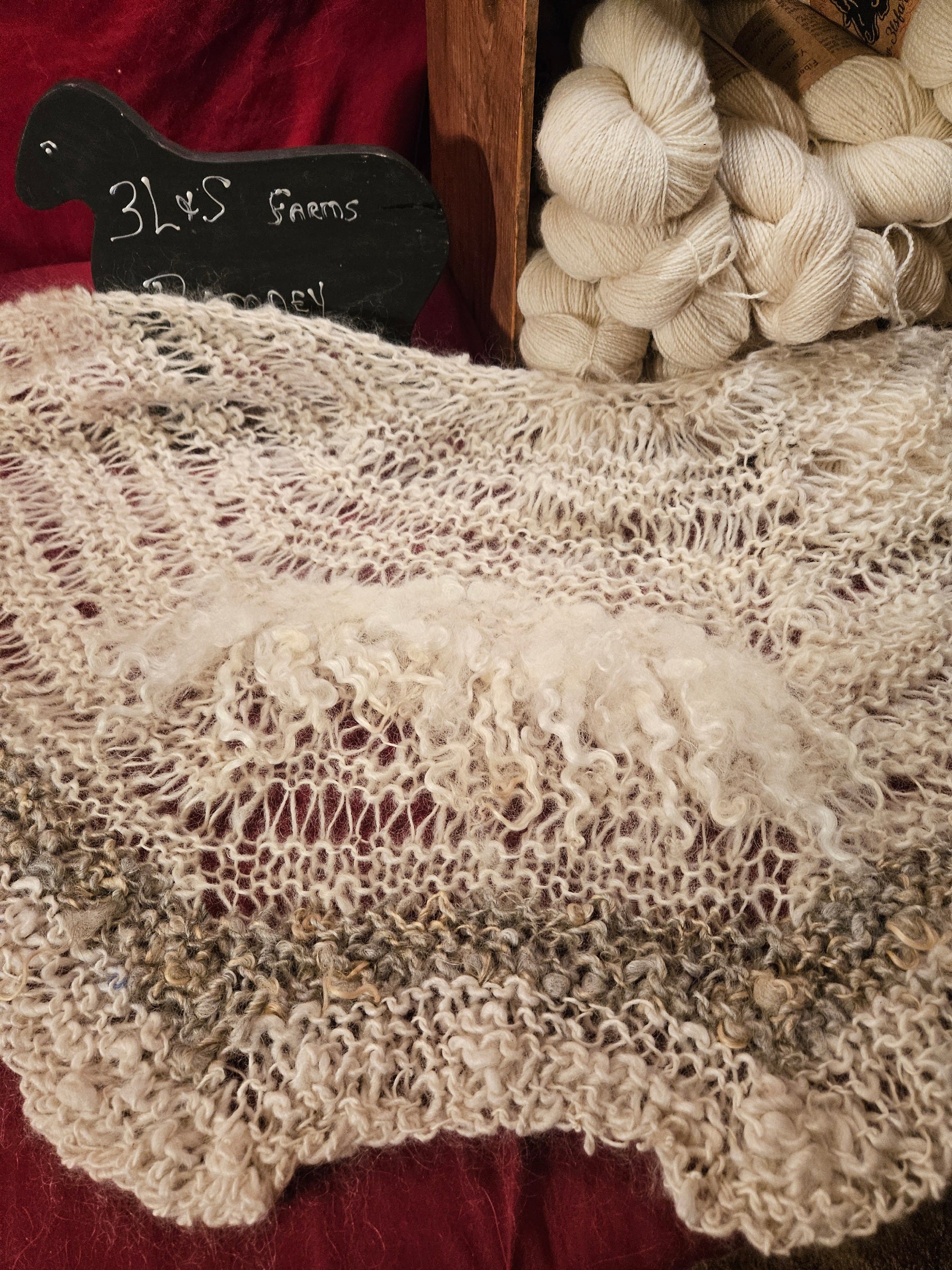 Handspun & Handknit from Cotsold Lamb Fleece @ 3L&S Farms. The Lambs fleece sourced from a Small Flock like Us!