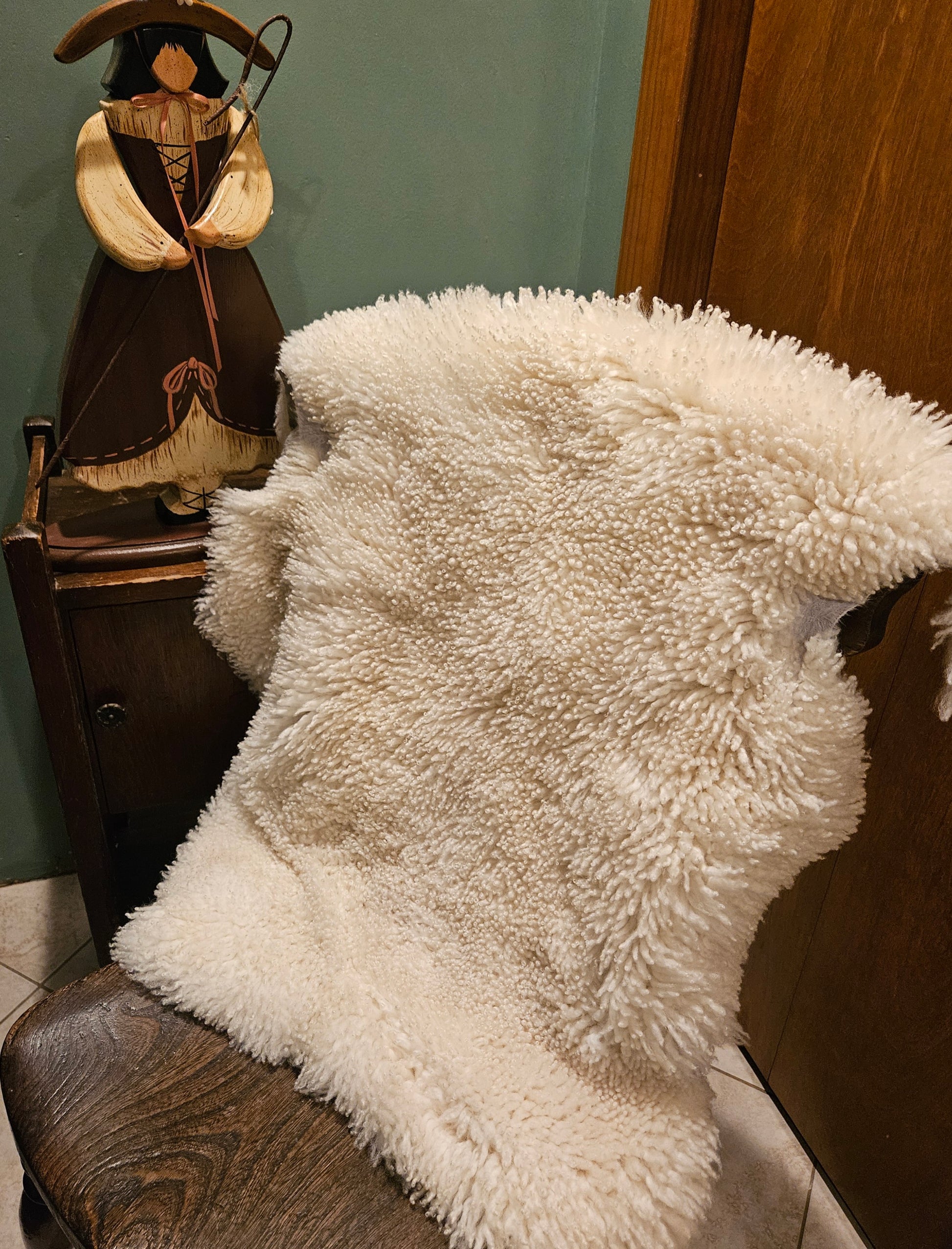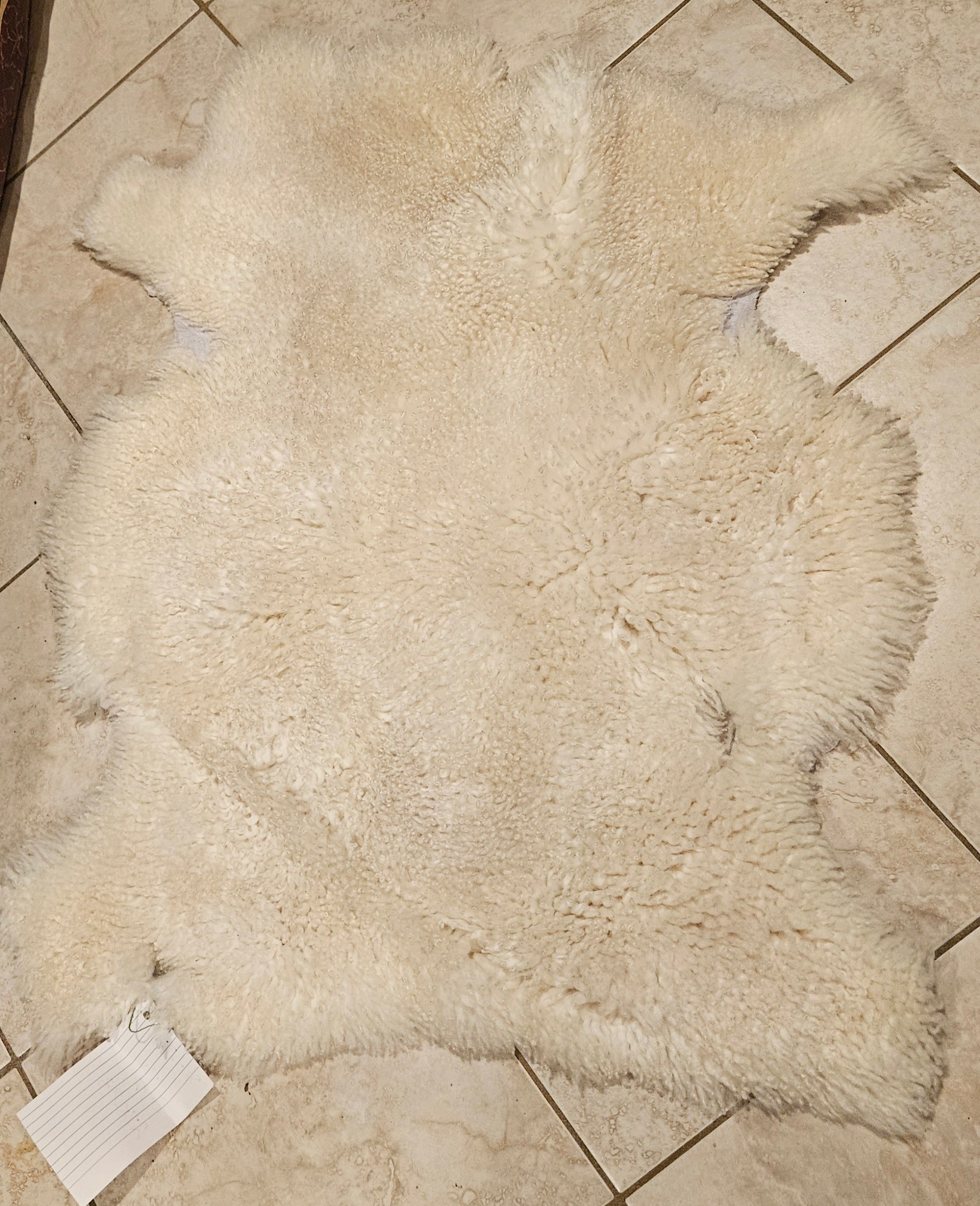 Luxious White Sheepskin. Silky Soft fleeced pelt. Brings warmth & beauty to that special nook!